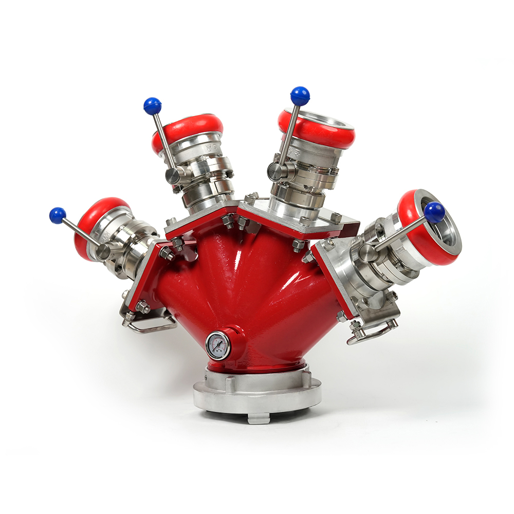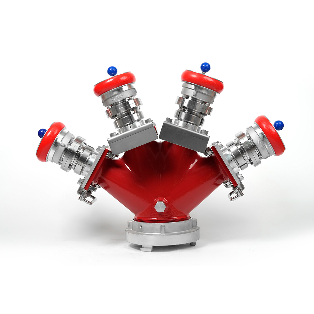 Distributøren af låsningsbrandslangen er en brandbekæmpelsesvandsdelere Udstyret med en anti-misoperation-låsemekanisme, designet til at opdele en enkelt vandstrøm i flere vandløb. Hver stikkontakt er udstyret med en uafhængigt kontrolleret ventil.
