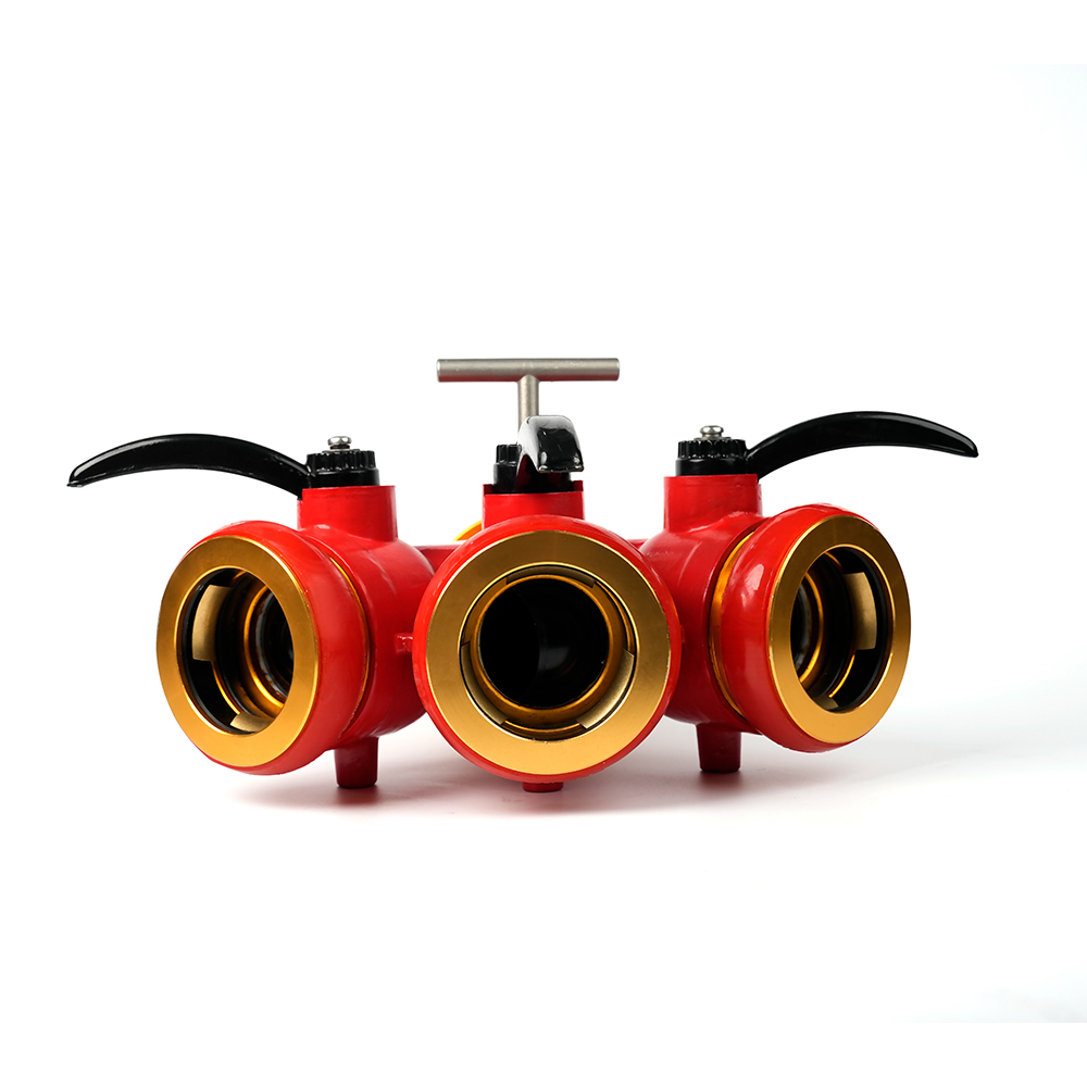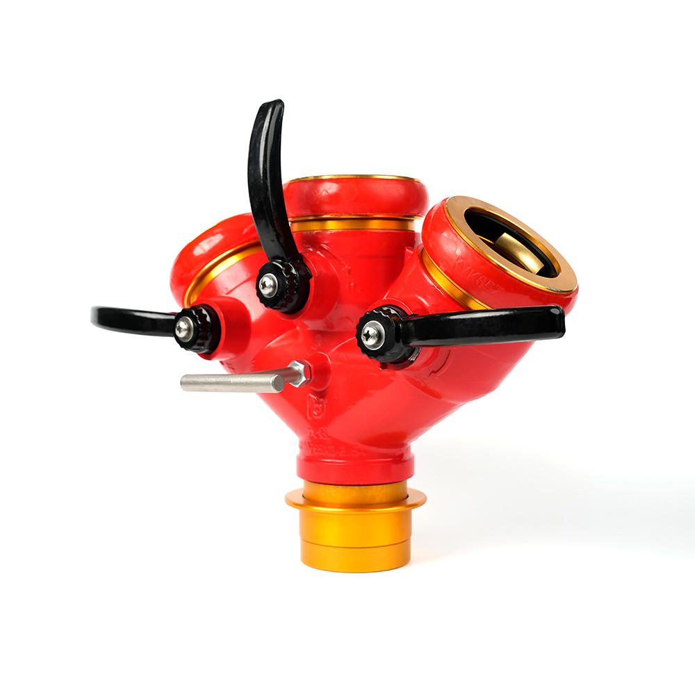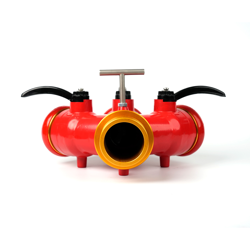 Distributøren af låsningsbrandslangen er en brandbekæmpelsesvandsdelere Udstyret med en anti-misoperation-låsemekanisme, designet til at opdele en enkelt vandstrøm i flere vandløb. Hver stikkontakt er udstyret med en uafhængigt kontrolleret ventil.